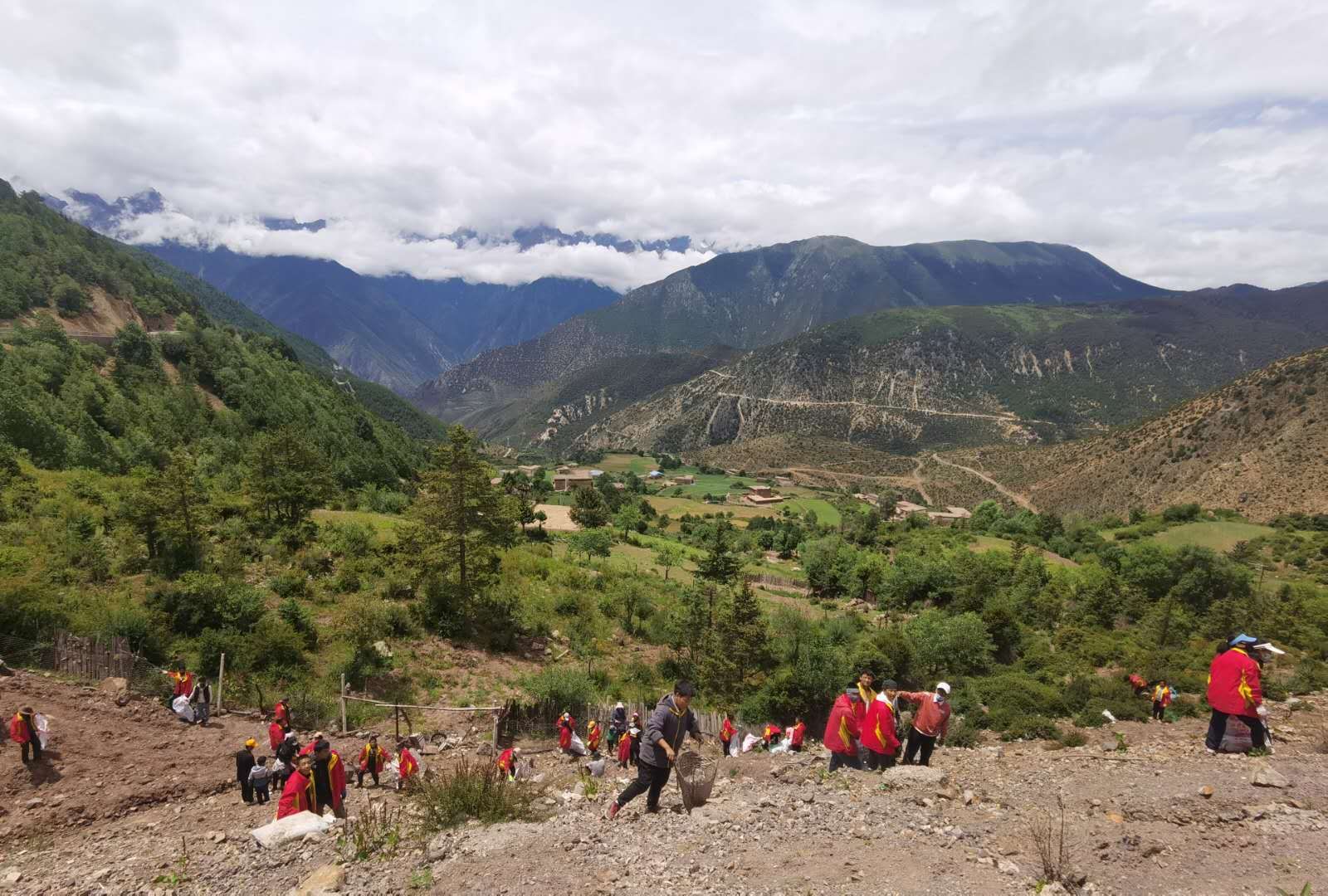 记者见到尉建新时,他正在红拉山半山腰和村里的亲戚们一起捡垃圾。尉建新此前一直在芒康县从事建筑施工,因为妻子临产,不得不回来了。“央增是村上的护林员,尽管要生了,但护林员的活不能停下来,我得替她!”尉建新说,“现在整个区域都保护得很好,好久没有听说有乱砍滥伐、乱捕滥猎的了,更别说火灾什么的了。”