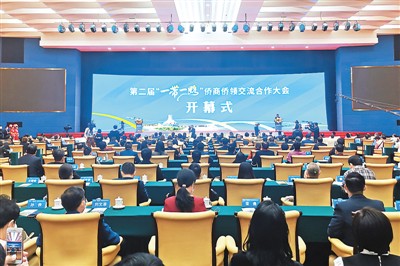 第二届“一带一路”侨商侨领交流合作大会开幕式现场。 本报记者 高 乔摄