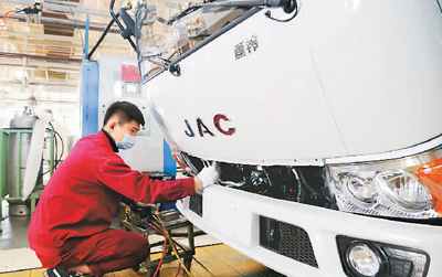 近日,工人在山东省青州市一汽车制造企业总装车间内组装生产。 王继林摄(人民视觉)