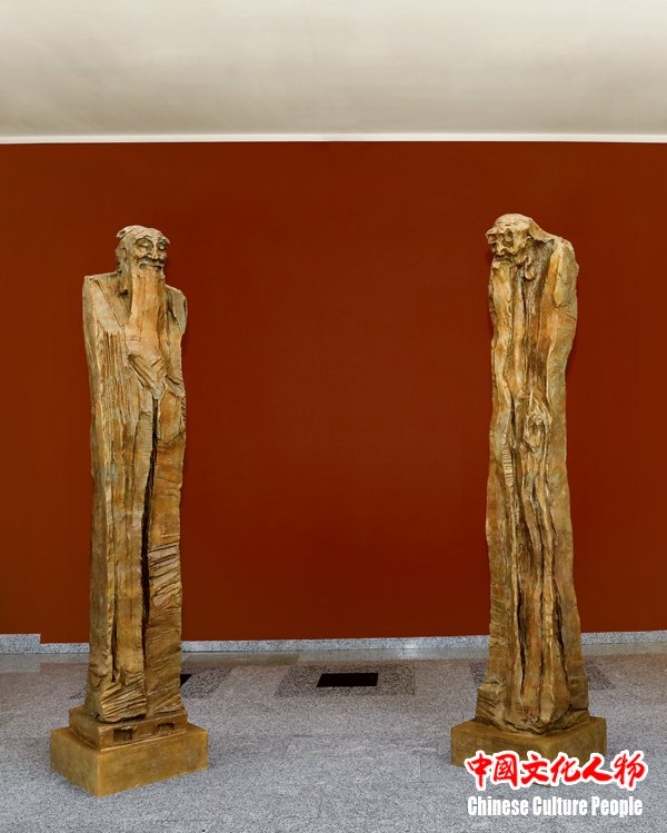 吴为山雕塑作品《问道》由青铜铸造的孔子和老子两尊雕像组成,取自《史记·老子韩非列传》中所记载“孔子问道于老子”的典故,生动地表现了两位文化先贤晤面的历史瞬间