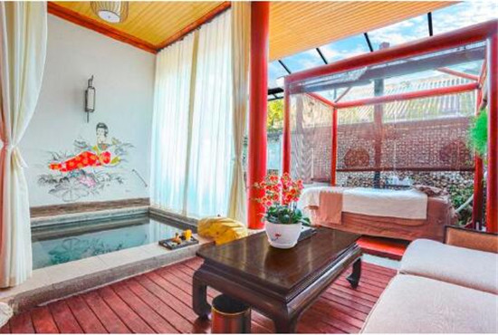 客天下水晶氡温泉以天然的水晶山与氡温泉为核心资源,以“世界沐浴文化”与建筑风格为主题,打造中国区、日本区、欧洲区等多个主题风情温泉沐浴体验。