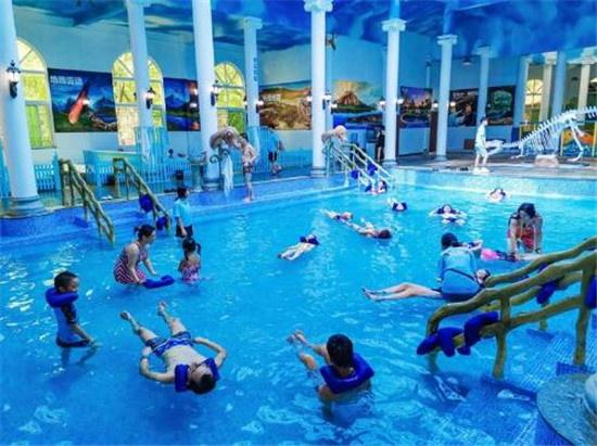 侏罗纪死海温泉:应用天然矿物盐,使盐与水分科学配比形成奇特的漂浮效果。项目包含砭石药盐、死海盐疗、盐雾沁肺、死海漂浮四种科学疗法,此外还包含儿童主题乐园系列多种游玩设施。