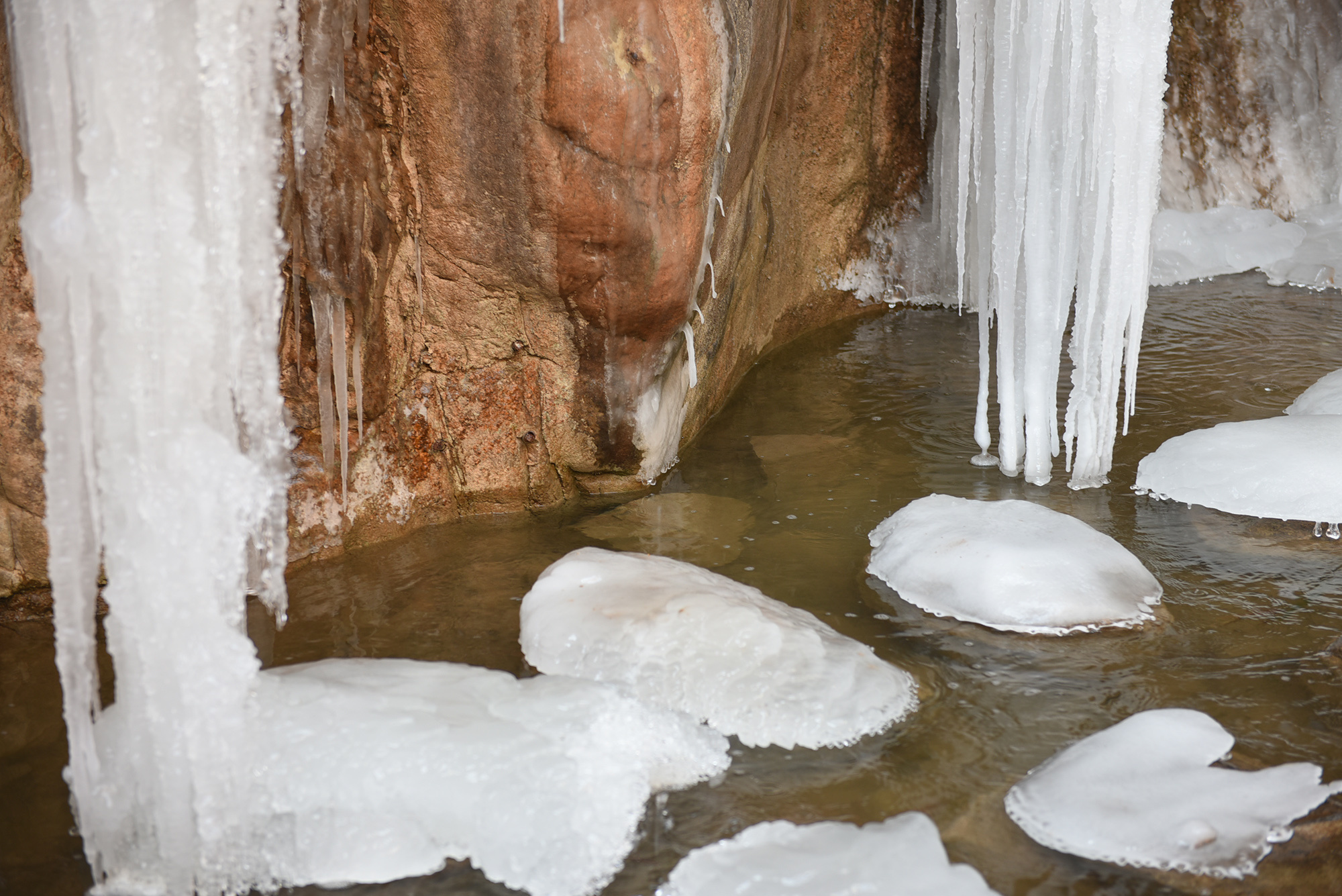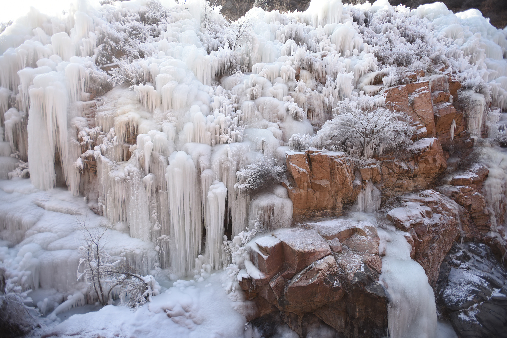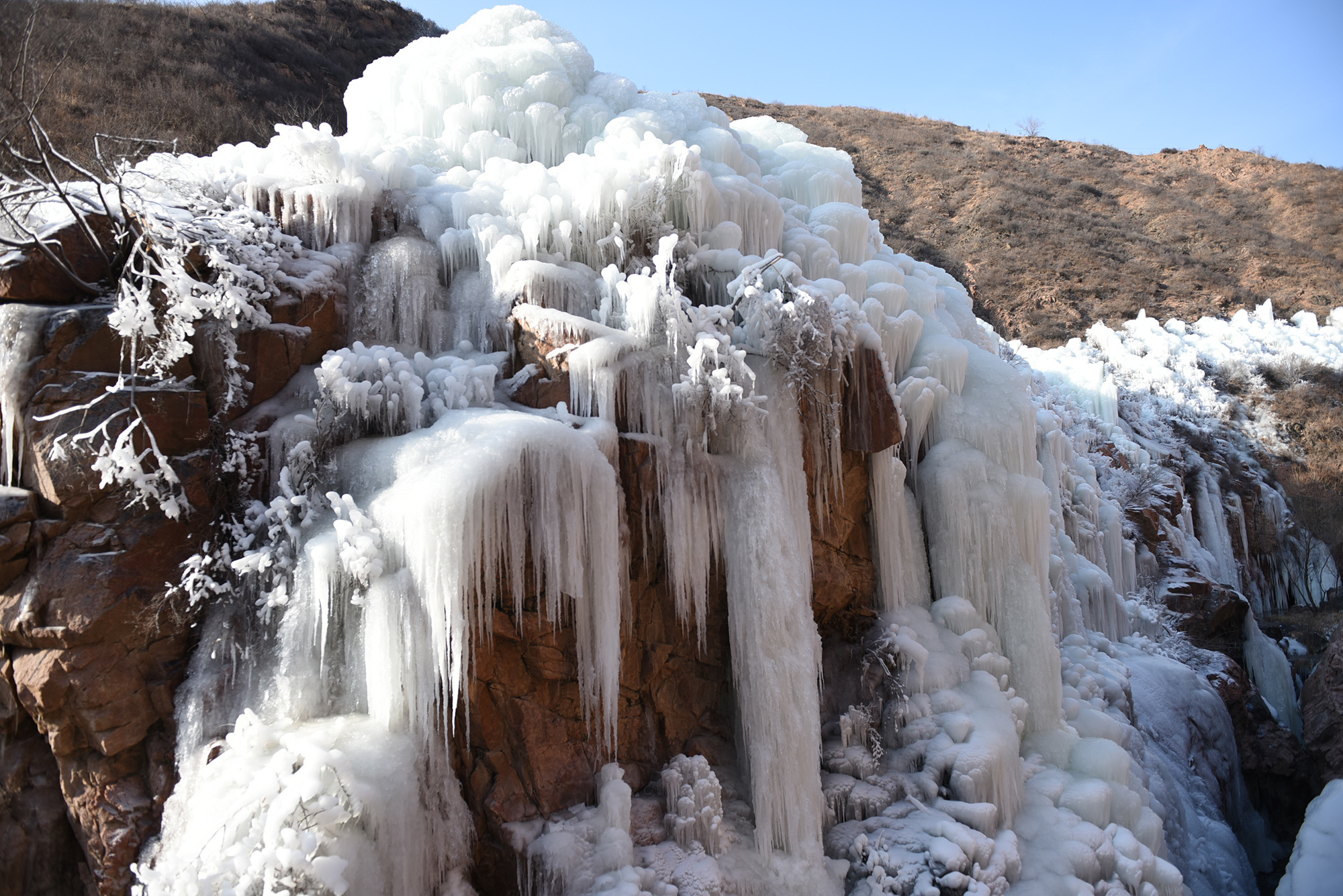 位于河北省张家口市宣化区王家湾乡桑干河流经的燕山山脉峡谷中的冰瀑。