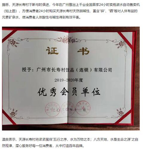 据悉,天源长寿村不断与时俱进,今年在广州推出上千台全国首家24小时卖瓶装水自动售卖机(如上图),方便消费者24小时购买天源长寿村天然弱碱性、富含“锌”、“硒”等对人体有益的元素矿泉水,使消费者人体酸性与碱性得到有效平衡。