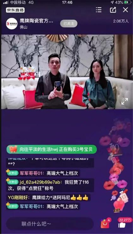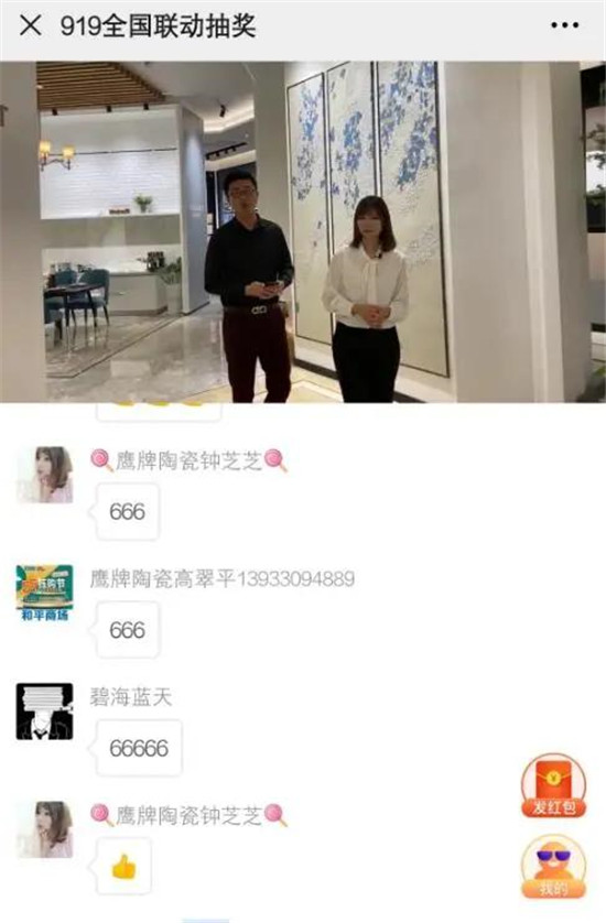 46年的鹰牌陶瓷,始终坚持创新、敢为人先的精神。疫情下2020年,鹰牌积极在线上链接消费者,先后开展线上直播、微信爆破、线上团购等活动,让消费者足不出户就能享受到超便捷的购砖、设计、配送的服务,享受到鹰牌的匠心品质。