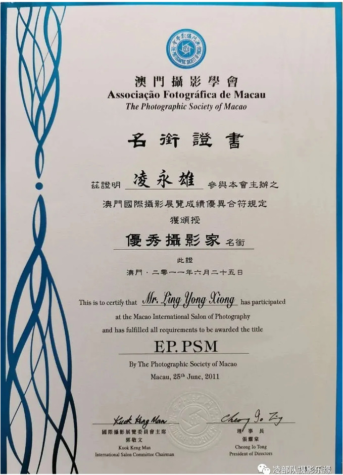 由于凌永雄先生在世界性的国际摄影大赛中成绩彪炳,成为“第四届中华艺术(2016年台湾)金马奖”和“第七届中华艺术(2017年马来西亚)金龙奖”得主,并在“沙巴全国影展”中荣获最佳摄影教育成果奖。