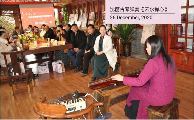 之后大家饶有兴致的欣赏了新礼会精心为大家准备的传统文化节目。沈丽古琴工作室沈丽老师及团队为大家现场弹奏了古琴曲《观心》和《云水禅心》,其美妙的雅乐令现场众嘉宾听的如痴如醉;