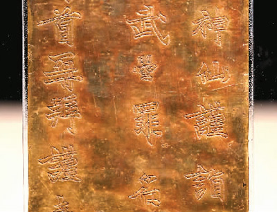 河南博物院“镇院之宝”武则天金简(局部) 新华社记者 李 安摄