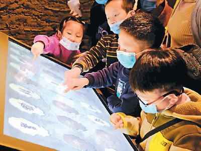 小朋友们在河南博物院体验触屏设备。 河南博物院供图