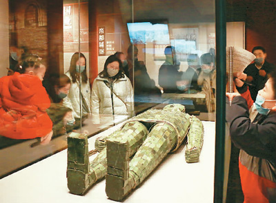 观众欣赏“泱泱华夏·择中建都”基本陈列展出的金缕玉衣。 河南博物院供图