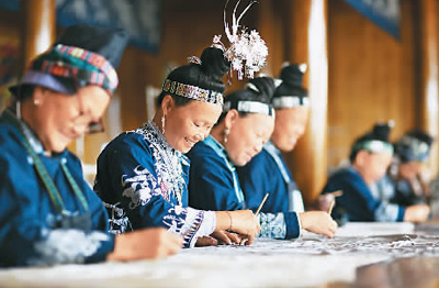 贵州松桃苗族自治县的石丽平是松桃苗绣的代表性传承人,2016年,她参加中国非遗传承人群研修研习培训计划的学习后,以自己创办的企业为主体,培养了近1万多名绣娘,带动28个乡镇3800名妇女就业。