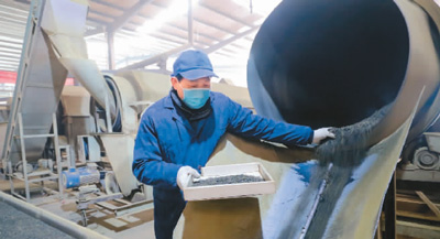 近年来,位于河南省信阳市光山县产业集聚区的辰龙茶叶扶贫车间将茶叶远销到多个“一带一路”沿线国家,助力中国茶叶“走出去”。图为1月10日,工人正在生产摩洛哥客户订购的绿茶。