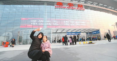 2020年12月26日,当地居民与雄安站合影。 周宇杰摄(人民视觉)
