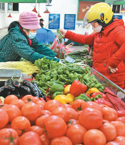 一月十一日,在江苏省连云港市海州区江山菜市场,市民在选购蔬菜。 耿玉和摄(人民视觉)