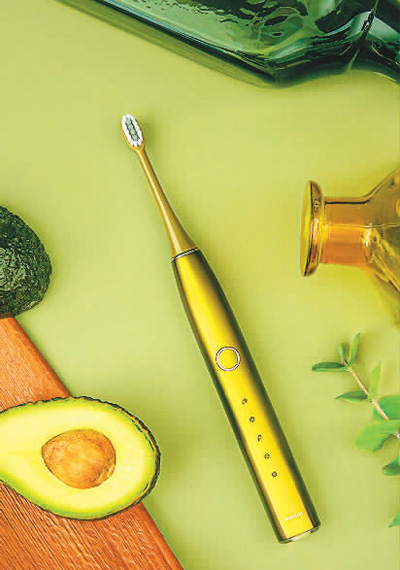 罗曼与阿里巴巴团队联合设计的牛油果色电动牙刷“小果刷”。 罗曼供图