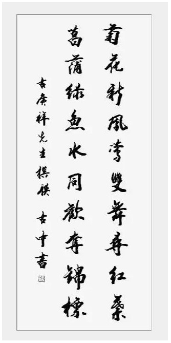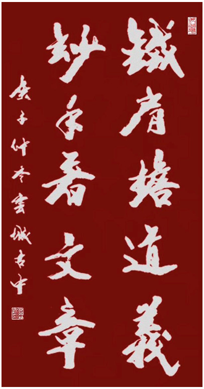 行是知之始,知是行之成。所以在这座城市里,总有让人做出“英雄行为”的地方。古中留给我是“风尚建设者”的印象,相信其“虑贵远,心贵公,信贵笃,行贵果”之济世态度定能弘扬华夏文化光彩于久远。在此,我谨以嵌名联概述古中的人格特质及其艺术修养: