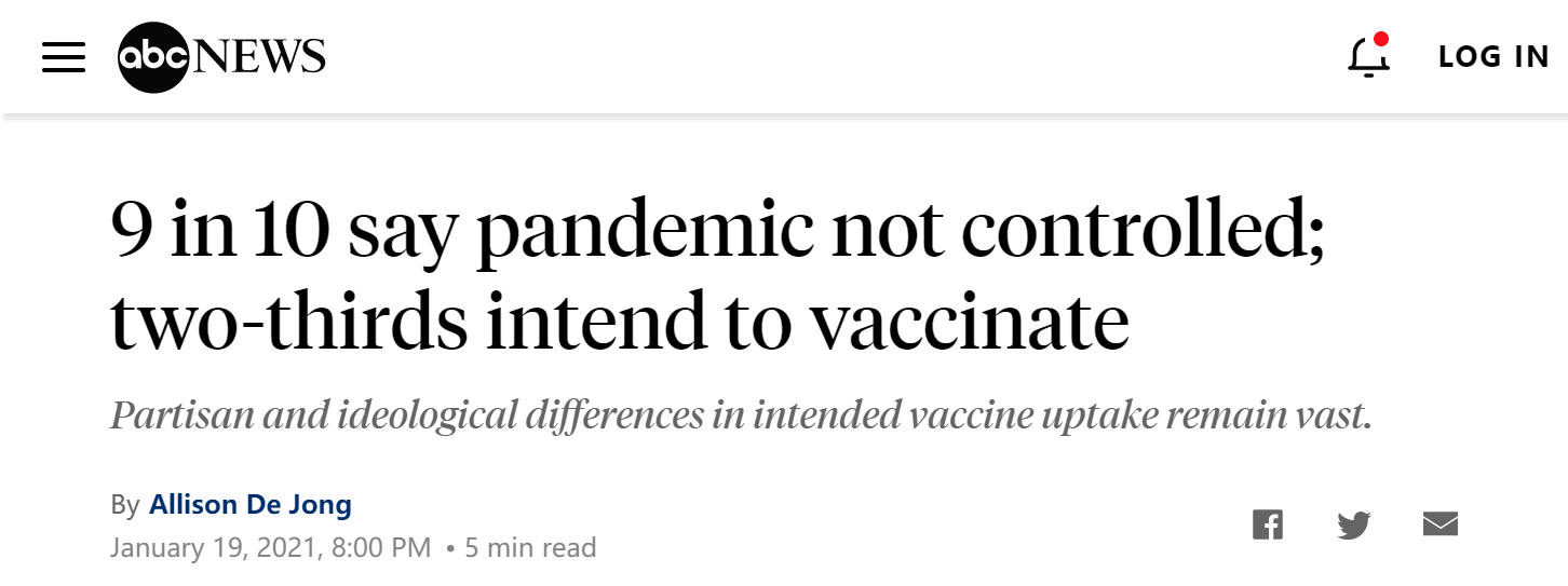 有分析认为,尽管拜登雄心勃勃地表示将应对疫情作为继任后的首要工作,但面对毫无刹车迹象的疫情形势、进展缓慢的疫苗接种、支离破碎的社会民意,美国疫情前景仍不明朗。