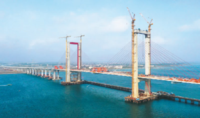 一月二十五日,湛江调顺跨海大桥成功合龙。 新华社记者 刘大伟摄