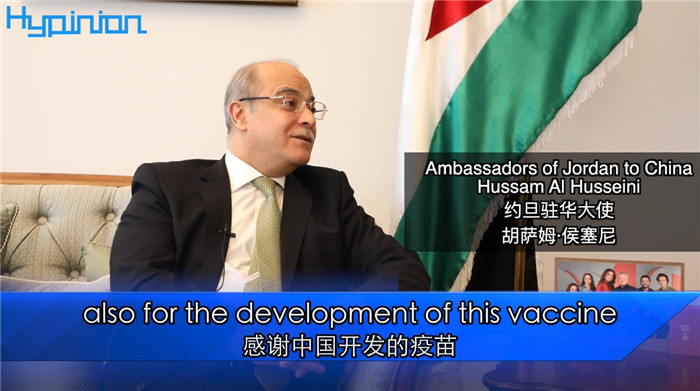 约旦驻华大使胡萨姆·侯塞尼表示:中国国药集团的新冠疫苗已经在约旦获准使用。或许不久之后,中国科兴疫苗也有可能获得批准。我们对这两支疫苗充满信心。感谢中国开发的疫苗,我们相信中国疫苗能为全球及约旦的公共卫生安全作出巨大贡献。