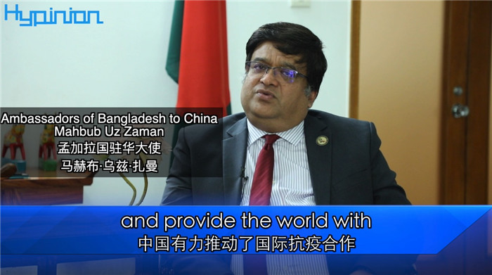 孟加拉国驻华大使马赫布·乌兹·扎曼表示:中国国家主席习近平将新冠疫苗作为全球公共产品的承诺令我们备受鼓舞。中国疫苗并非用于商业用途。孟加拉国广大民众认为,中国有力推动了国际抗疫合作,为全球抗疫提供了亟需的物资与援助。