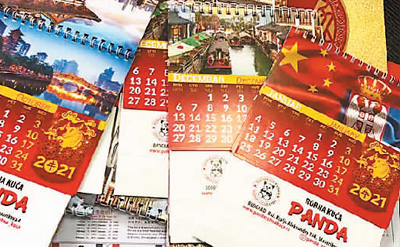 北京天安门、中国福字、金牛画作……塞尔维亚丽水商会会长邹军勇定制的牛年日历上满是“中国味儿”的照片、画作,这是他为当地民众送上的新春礼物。