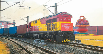 2月9日,一趟满载41个集装箱饰品、箱包、手机周边产品等日用百货的中欧班列(西安),从中国铁路西安局集团有限公司西安西站新筑车站缓缓驶出,为欧洲消费者带去来自中国的“新春礼物”。张丹华 钟翰林摄