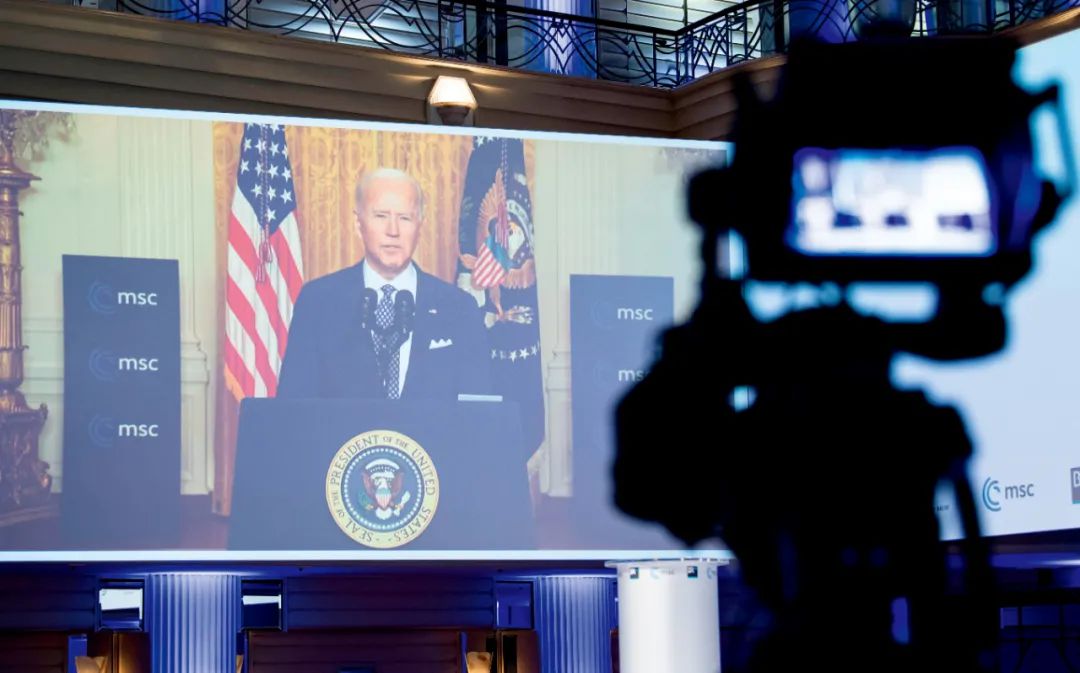 2月19日,美国总统拜登出席慕尼黑安全会议线上特别会议。图/新华