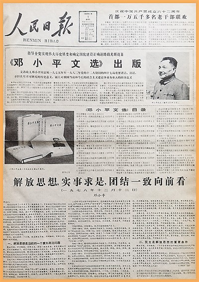 1983年7月1日,《人民日报》第一版刊发《解放思想,实事求是,团结一致向前看》。