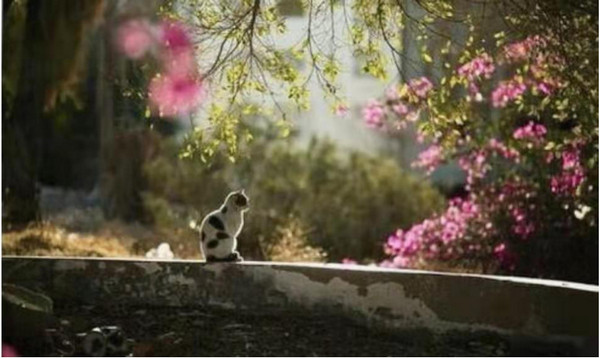 早有花猫欢悦舞,嬉戏花丛乐融融。