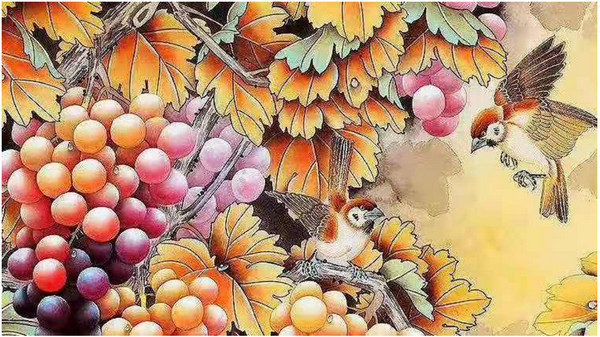 绿藤晶毬沾露清,硕果青青墨写成。