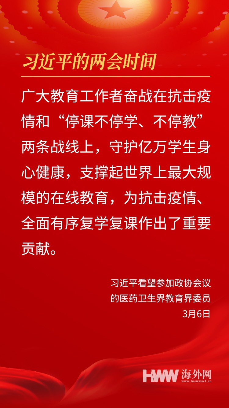 3月6日,中共中央总书记、国家主席、中央军委主席习近平看望参加全国政协十三届四次会议的医药卫生界、教育界委员,并参加联组会,讲了这些重要观点。