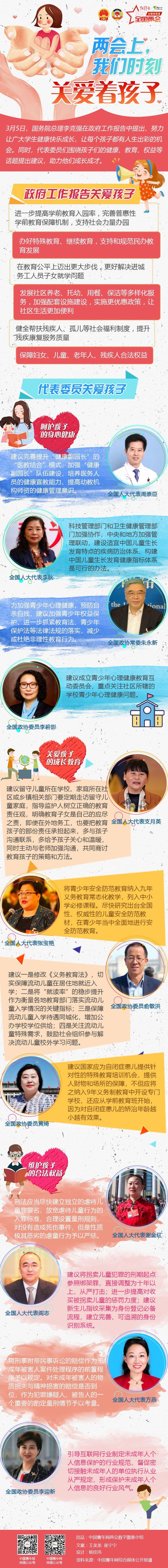 3月5日,国务院总理李克强在政府工作报告中提出,努力让广大学生健康快乐成长,让每个孩子都有人生出彩的机会。同时,代表委员们围绕孩子们的健康、教育、权益等话题提出建议,助力他们成长成才。