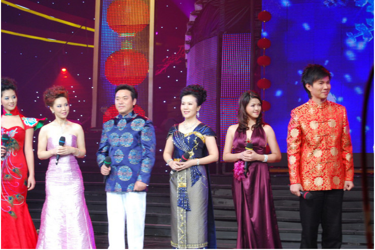 本书作者任传功于2008年在河南电视台参与主持春晚节目