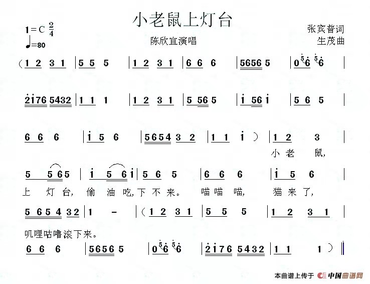 歌曲《小老鼠上灯台》入选人教版全国小学音乐课本二年级下册。入选DVD《世界经典儿歌大全》,由陈欣宜、安安等许多著名童星演唱,出版光盘,广为流传,妇孺皆知。
