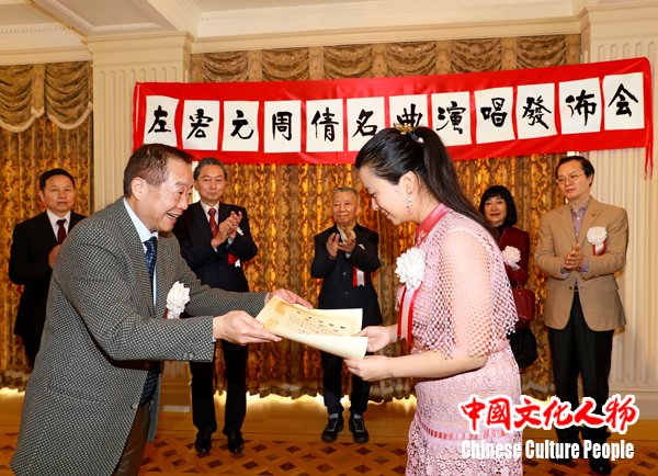 著名作曲家左宏元和学生周倩在发布会现场为中日两国嘉宾及媒体记者演唱邓丽君名曲选段