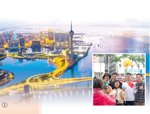伶仃洋畔,欢歌笑语。当天,澳门举行了“迈向美好明天”大巡游。4500多人组成了21个花式表演方阵、24辆大型花车及群众方阵,规模空前。