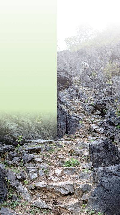 邦亮的石山并不算高,却极为难走。嶙峋的石块杂乱分布,有的锋利异常,手一攀,便划出一道印记。