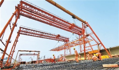 深(圳)中(山)通道是串联粤港澳大湾区轨道、公路两张交通网的关键一环,建成后将成为连接珠江两岸的交通干线。图为深中通道位于中山市一侧的建设现场,工人们正在加紧施工。本报记者 金晨摄