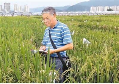 清晨日头刚起,66岁的国家粳稻工程研究中心主任华泽田戴好遮阳帽,一手拿着试验记录本,一手撑着拐杖,便头也不回地钻进绿色的稻浪,一待就是一上午。