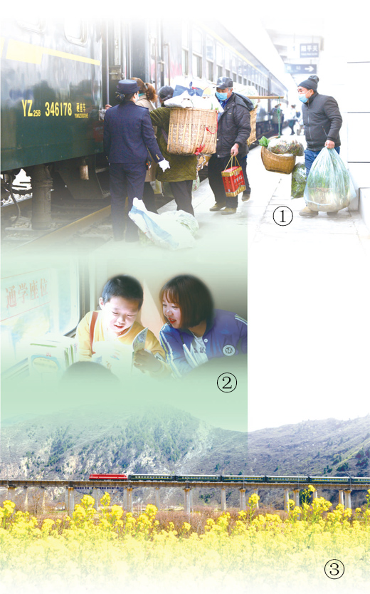 图①:在阳平关车站,当地群众乘坐6063次列车外出赶集。唐振江摄