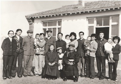 这张合影拍摄于1982年,6位孤儿已经长大成人,成家立业。中坐者为张凤仙和道尔吉。 资料图片