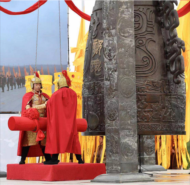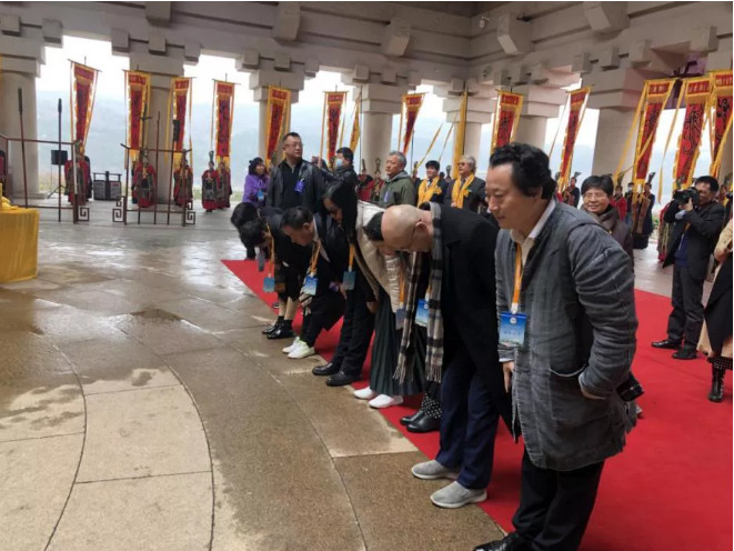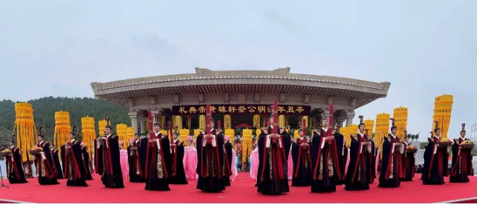 4月4日上午9时50分,辛丑(2021)年清明公祭轩辕黄帝典礼开始。鼓声雄浑,钟鸣悠远,击响的34通鼓声象征着全国34个省、自治区、直辖市、香港、澳门特别行政区和台湾地区以及海内外中华儿女崇敬初祖的共同心声,9响钟鸣代表了中华民族传统礼仪的最高礼数,表达全体中华儿女对人文初祖轩辕黄帝的无限景仰和无比感恩。《黄帝颂》响彻全场,拉开典礼大幕。