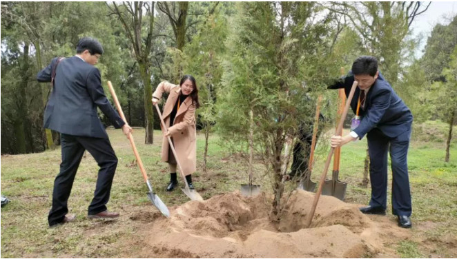 在清明公祭轩辕黄帝典礼结束后,海外华文媒体采访团一行前往“侨心林”,种植了桥山柏。