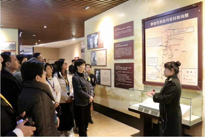 在洛川会议纪念馆,采访团一行了解了有关洛川会议的历史,参观了多间相关场馆,包括徐向前故居、洛川会议召开的窑洞等。