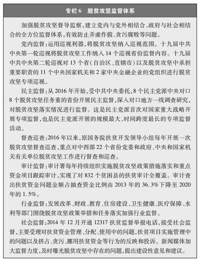 (注8)脱贫攻坚普查是精准扶贫精准脱贫的重要基础性工作,是对脱贫攻坚成效的全面检验。2020年至2021年,中国在中西部22个省份开展了国家脱贫攻坚普查,重点围绕脱贫结果的真实性和准确性,全面了解国家贫困县脱贫实现情况。普查内容包括建档立卡基本情况、“两不愁三保障”实现情况、获得帮扶和参与脱贫攻坚项目情况,以及县和行政村基本公共服务情况等。