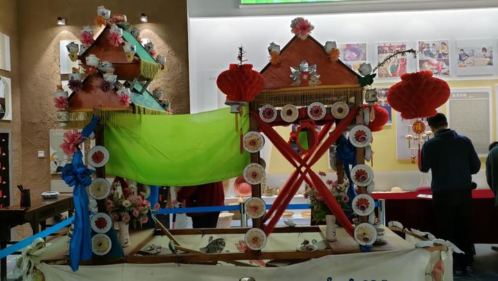 据介绍, 渭南市非物质文化遗产展示传习馆主要展示市非物质文化遗产保护名录及其相关资料、实物。展示的名录有全市非遗名录分布图,国家级、省级、市级共169个名录的项目简介;展示的资料有相关项目的剧本、曲谱、磁碟等约60余件;展示的实物主要有澄城尧头瓷,渭北刺绣,渭北面花,华县皮影,渭北拴马桩,秦源黑陶,泥塑,土织布,传统剧目及传统舞蹈的相关服饰、乐器、道具等1000余件,藏品丰富,充分凸显渭南非物质文化遗产在省内外的特色和优势。其中的华县皮影表演舞台、合阳提线木偶,潼关古战船,月琴等是对青少年进行传统音乐教育的活化石,也有助于开展艺术交流活动。