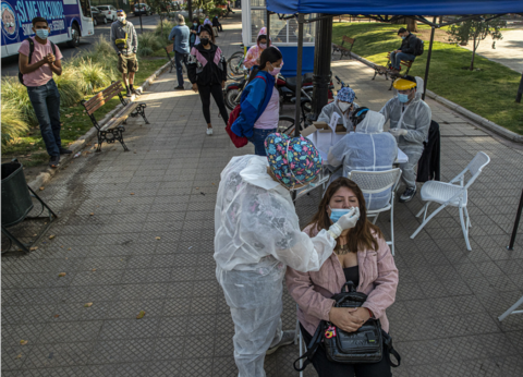 智利圣地亚哥,民众接受新冠病毒检测(资料图)