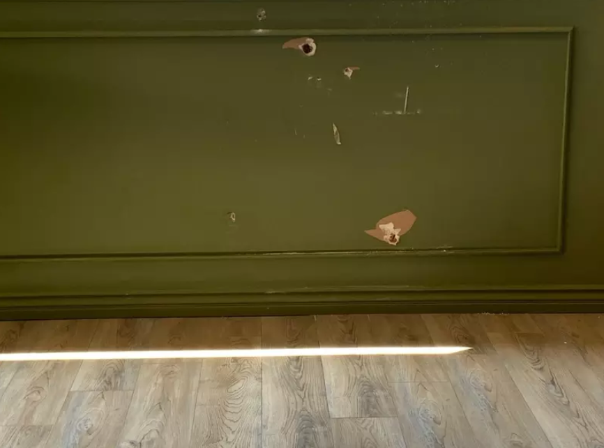 餐厅墙壁上弹痕清晰可见(《世界日报》)
