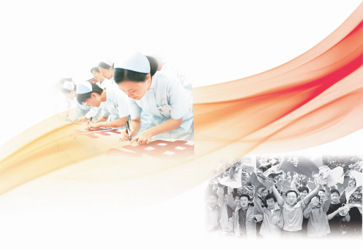 上图:2003年5月12日,福州市属医院的护士在条幅上签名,表达战胜非典的决心。杨婀娜摄(人民视觉)下图:2003年5月8日,解除隔离控制的北方交通大学学生欢呼雀跃。刘龙摄