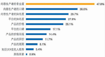 2020年中国用户购买知识付费产品时考虑的因素 图表来源:《2020年中国知识付费行业运行发展及用户行为调研分析报告》